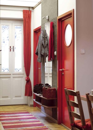 Mutatom mire gondolok.....A következőkben a piros szín és az ötletesség az uralkodó. Az élénk szín + a klassz csíkos szőnyeg kombinció vidámságot hoz már érkezéskor. A lebegő polc mélyedése remekül elrejti a táskákat, kulcsokat és a szürkével kombinált piros mindig nyerő páros. Aztán íme egy rusztikus pad, mi mindenre jó.....egy-két ötletes kampó a falra, amely kalaptartónak is megfelelő, belógó hangulatos ernyős lámpa és már meg is van a kellő összhatás.Kiegészítőnek egy-egy fonott kosár vagy tároló doboz, esetleg családi fotokból montage a falra vagy egy krétával irható tábla a legfontosabb teendőkkel, esetleg egy fali mécsestartó a tükör mellé vagy a komód tetejére egy csokor friss virág és már is minden olyan hangulatos és egyedi.